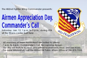Congratulations to the following Airmen who were recently promoted:- Senior Master Sgt. Charlie Lespier, 482nd Force Support Squadron- Master Sgt. Javier Matos, 70th Aerial Port Squadron- Master Sgt. Thomas Rodriguez, 482nd Aircraft Maintenance Squadron- Tech. Sgt. Misael Hidalgo Baerga, 482nd